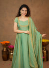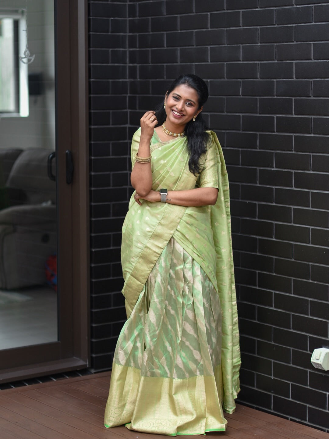 Prisha Olive Green Kids Pattu Pavadai Mini