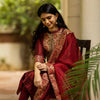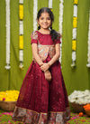 Agalvili Wine & Blue Dola Silk Printed Lehenga Set