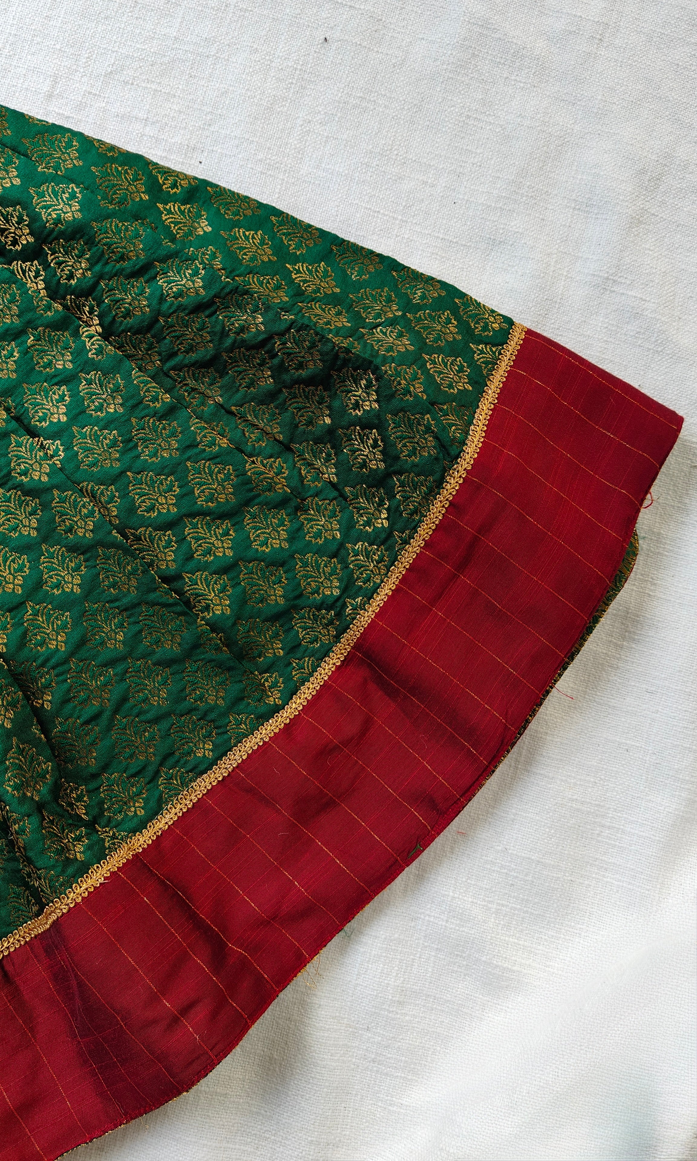 Main Body: Premium Green Brocade with all-over woven zari motifs