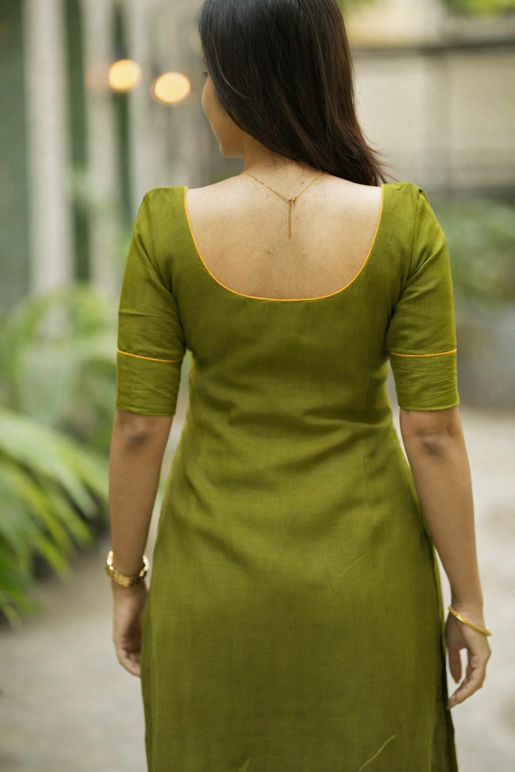 • Minimal piping at kurti hem and pant cuffs