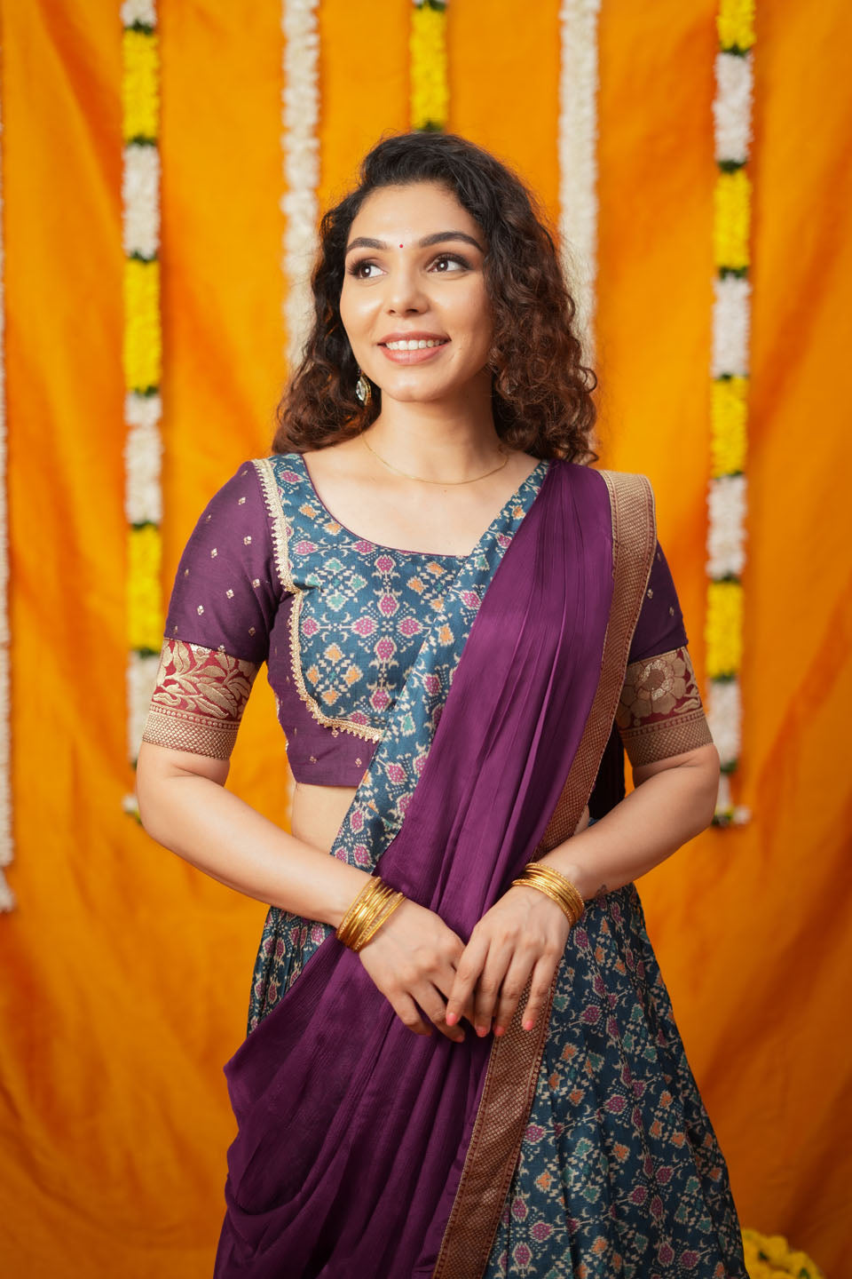 Rich Artisan Details – Pochampalli and block prints framed in Banarasi borders