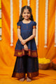 Celebrate the vibrance of tradition with the Brindha Green Handloom Set—a modern take on the timeless pavadai sattai, reimagined for today’s little divas. Crafted from rich Narayanpet handwoven cotton, this ensemble features a sleeveless crossover blouse with radiant zari stripes and a pleated skirt bordered in intricate peacock and floral motifs. With its bold silhouette and breathable comfort, Cavery brings grandeur to every step—whether she’s at a temple, family function, or festive gathering.