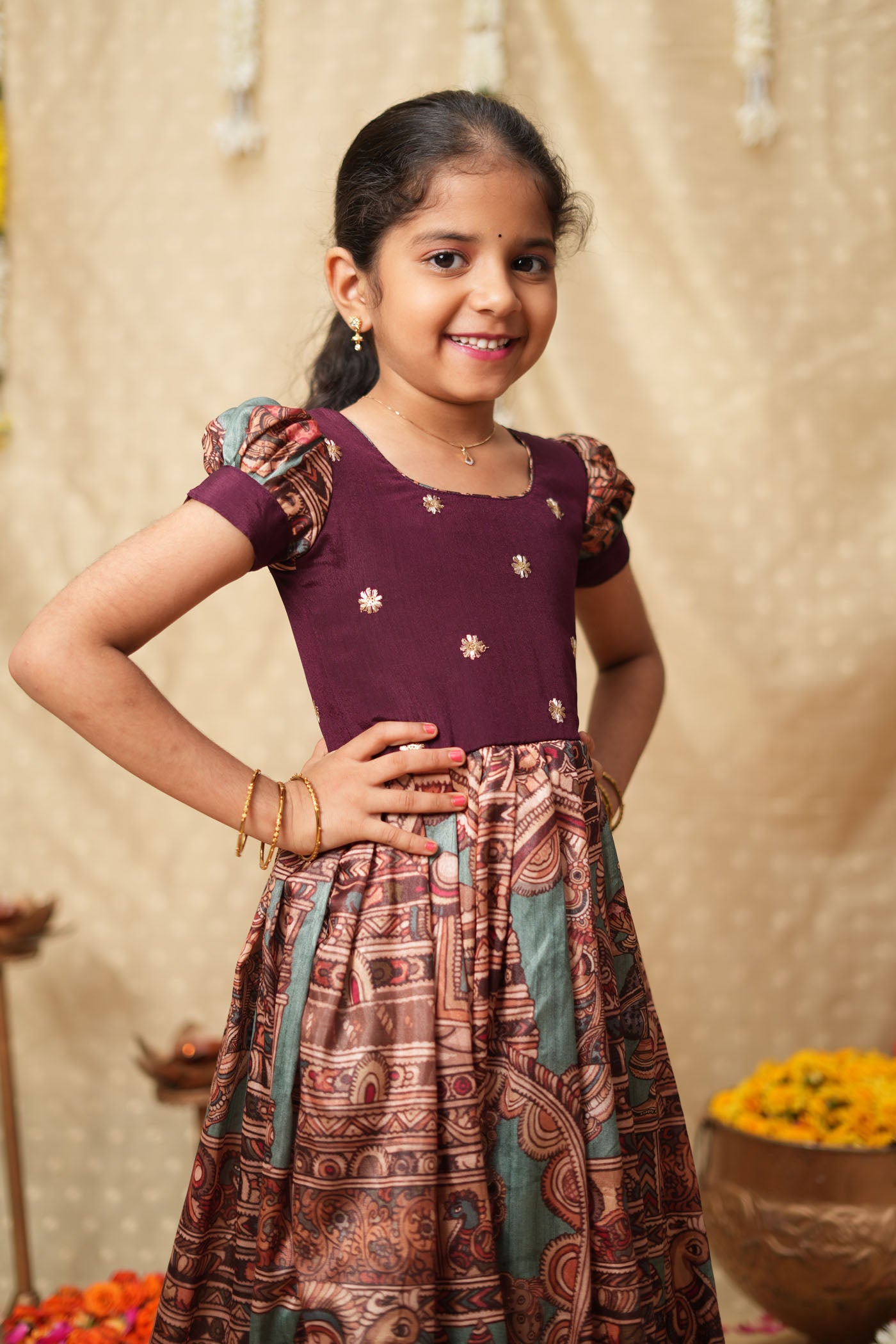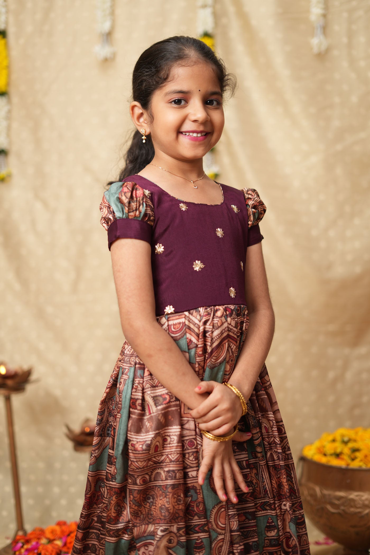 • Movement-friendly, flowy design ideal for festive celebrations
