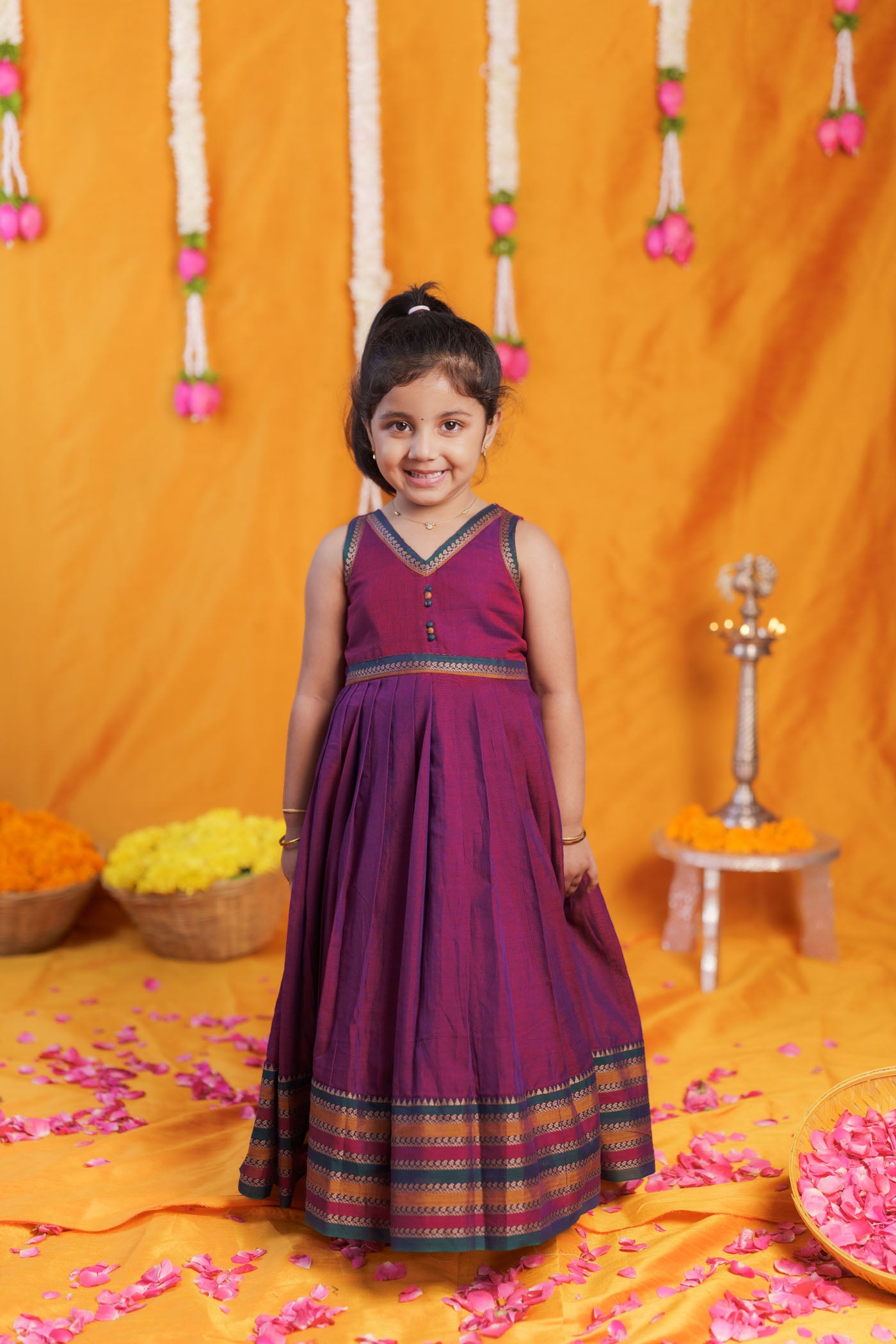 ✔ Perfect For - Temple visits & cultural functions, Navratri & Diwali festivities, Family celebrations & weddings, Traditional festive photoshoots
