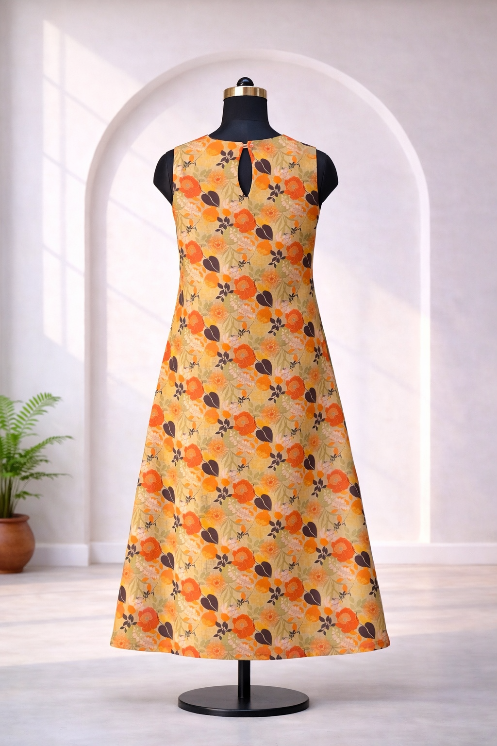 ✔ Modern Ethnic Silhouette – Sleeveless A-line kurti with structured shape