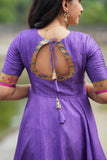 Twirl into timeless elegance with the Vaishali Violet Maxi Dress — an exquisite blend of regal hues, traditional motifs, and modern feminine detailing. Crafted from a lustrous cotton-silk blend and adorned with intricate Paithani-style borders, this flared ethnic dress brings heritage alive in every movement. The flattering wide neckline and cutout tassel-tie back strike a modern chord, making it perfect for festive seasons, cultural events, or heirloom gifting.